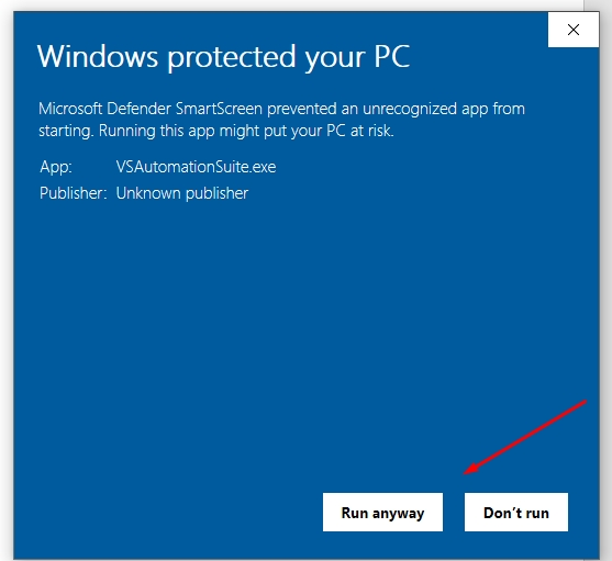 2. After clicking on the appropriate link, run the VSAutomationSuite.exe file that was just downloaded.